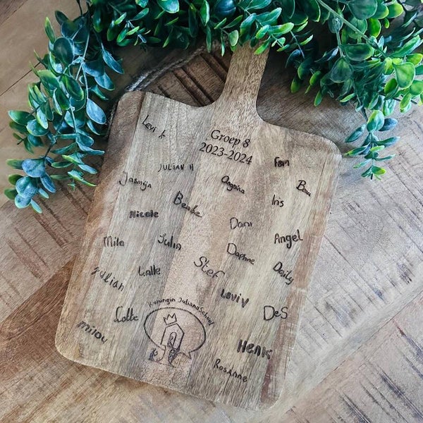 Maak elke borrel extra gezellig met een gegraveerde borrelplank. Laat de plank personaliseren met een naam, korte boodschap of een eigen ontwerp voor een uniek en mooi aandenken.