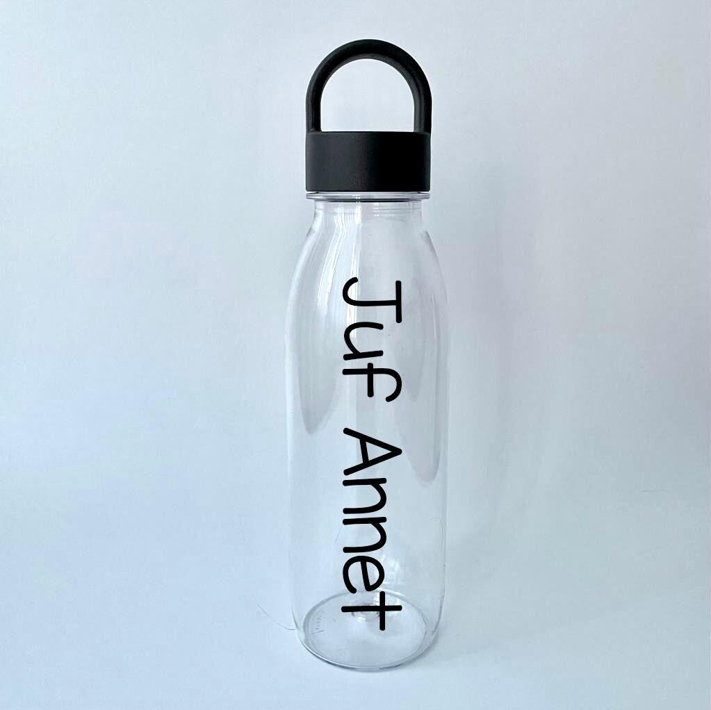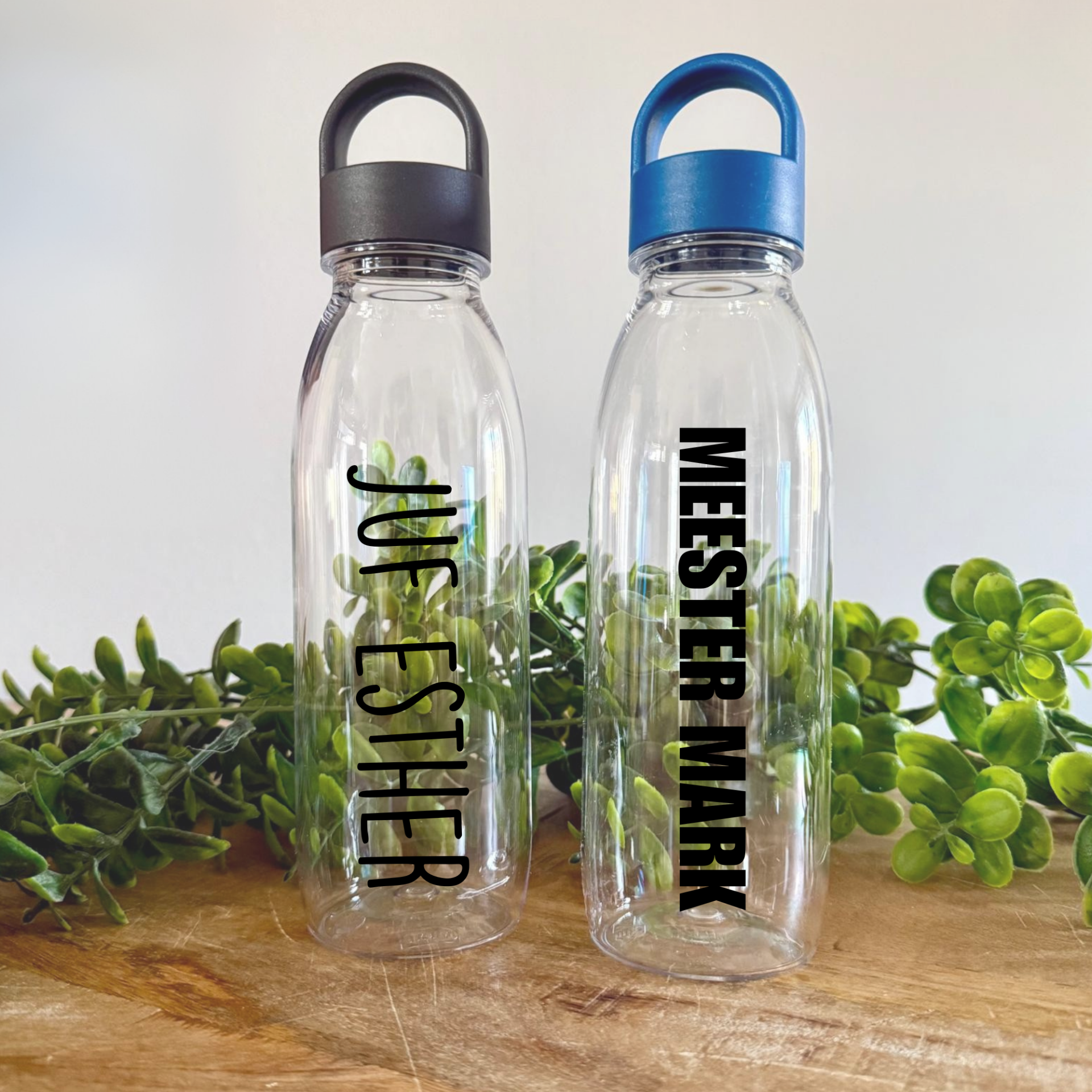 Geef een praktisch en persoonlijk cadeau aan je juf of meester met een waterfles voorzien van hun naam. Deze waterfles is perfect voor op school of onderweg. Een ideale manier om je waardering te tonen en hen te helpen gehydrateerd te blijven!
