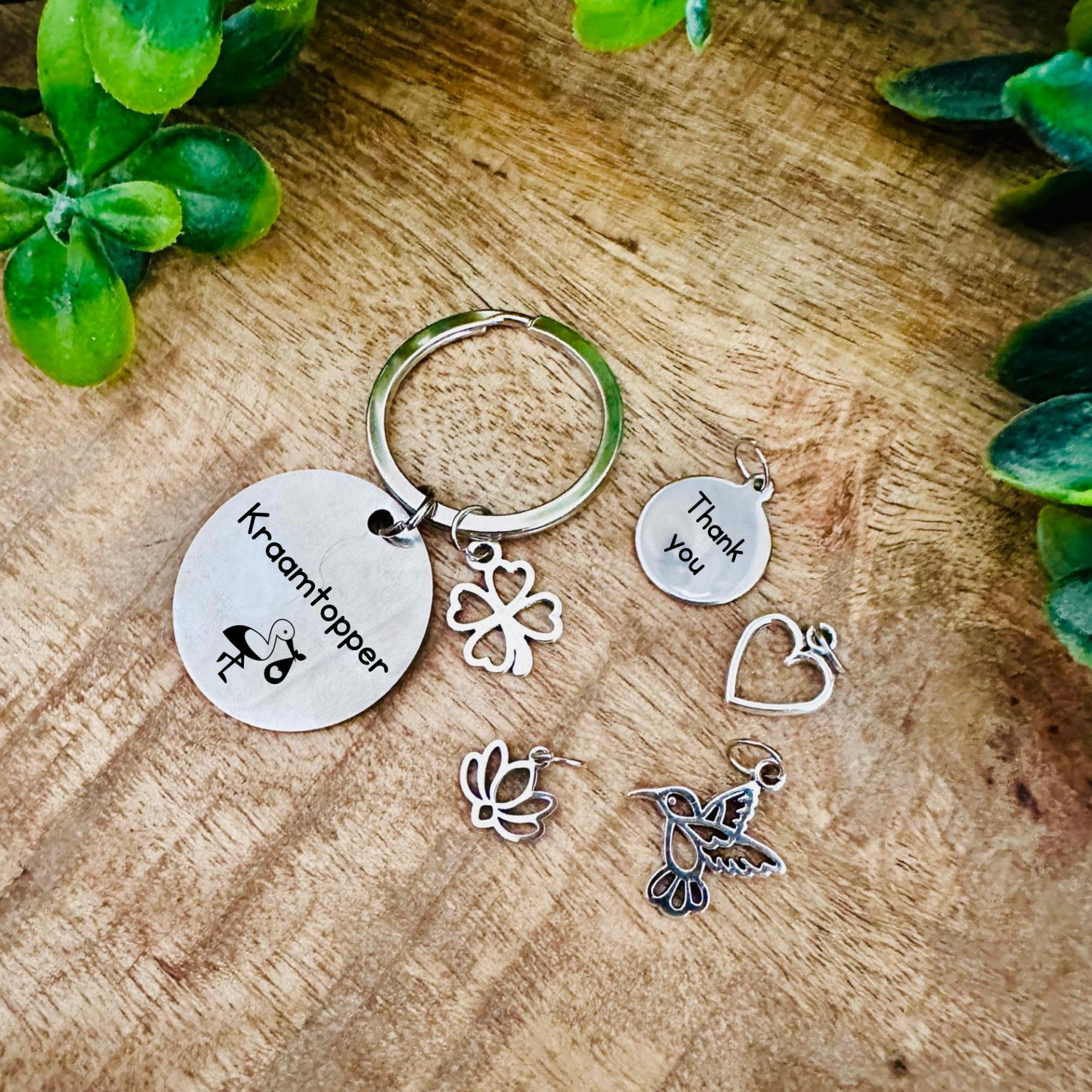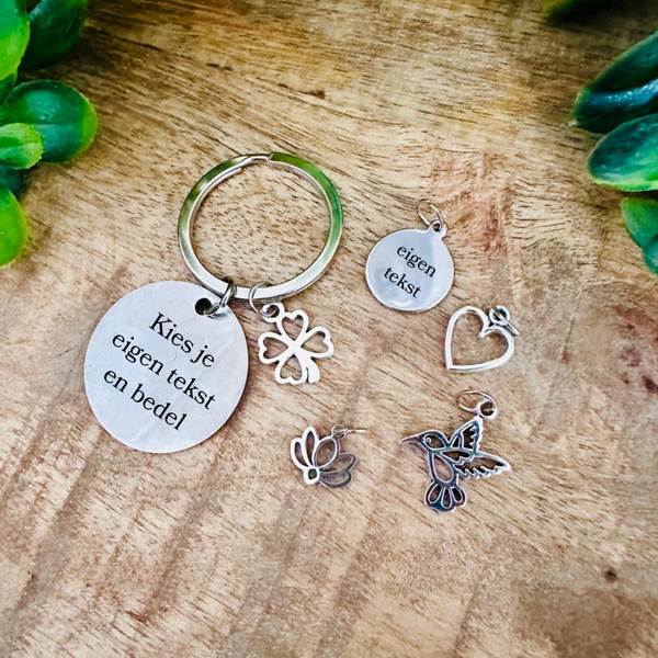 - Bedels: Selecteer uit verschillende bedels om jouw sleutelhanger helemaal naar wens samen te stellen.