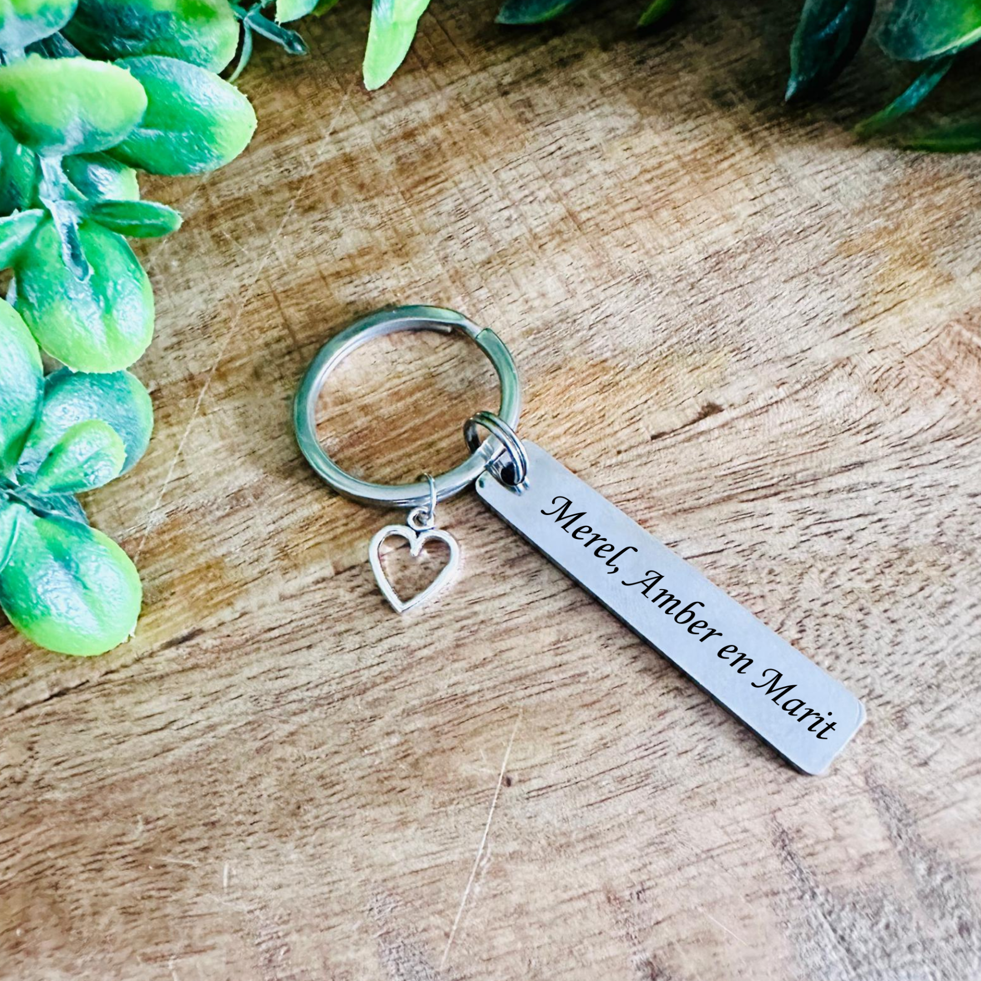 - Kies je eigen tekst: Laat de sleutelhanger graveren met een naam, datum of een speciale boodschap.