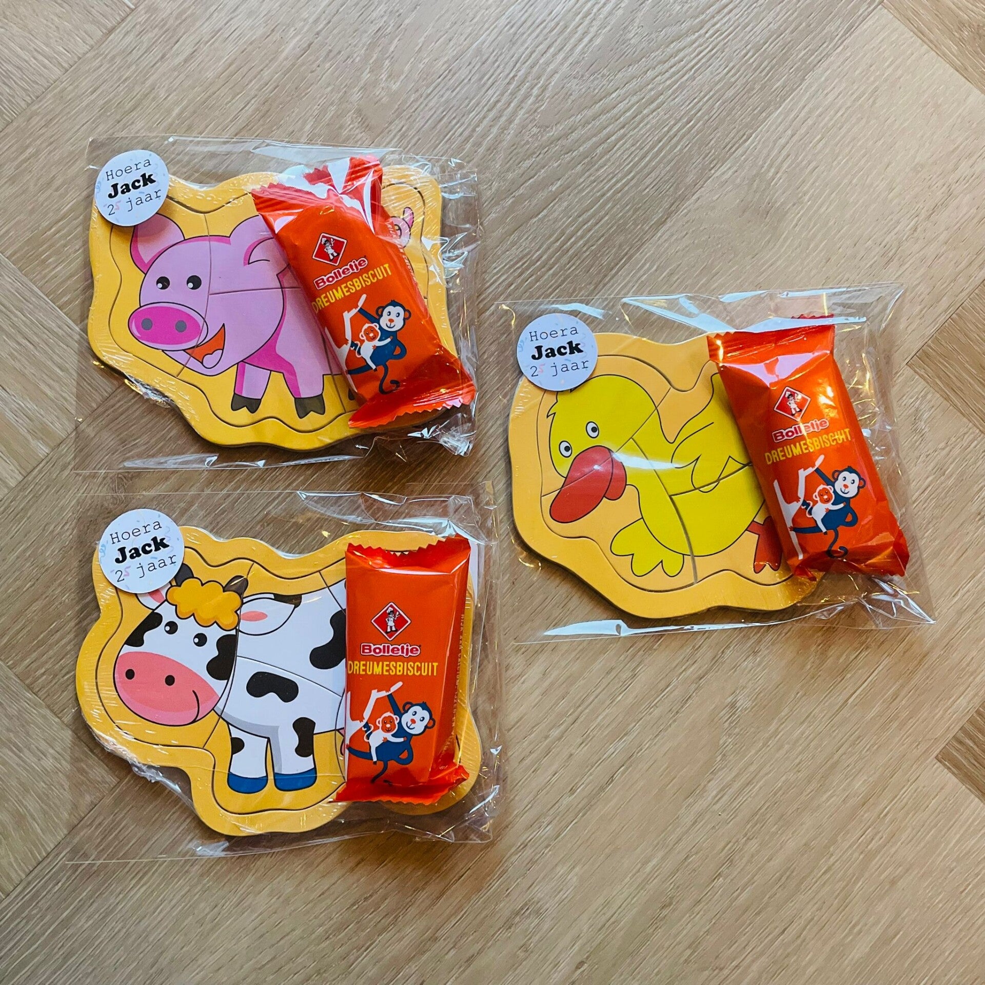 - Complete traktatie optioneel: Kies ervoor om de puzzels te leveren als complete traktatie met een koekje en een persoonlijke sticker voor een extra feestelijk tintje.