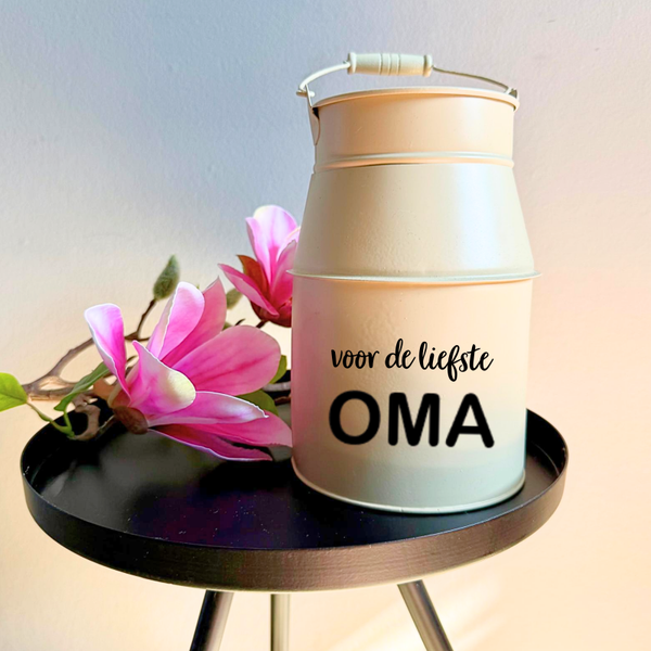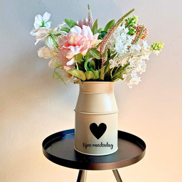 De melkbus is verkrijgbaar met verschillende lieve teksten speciaal voor Moederdag. Perfect om te vullen met een bosje bloemen en zo een glimlach op haar gezicht te toveren.