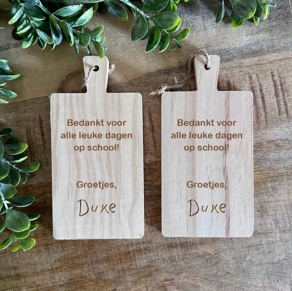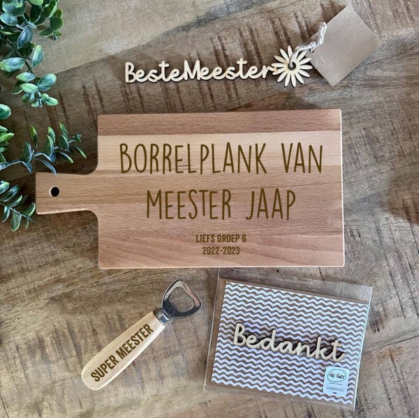 Laat een unieke borrelplank maken voor de juf of meester!
